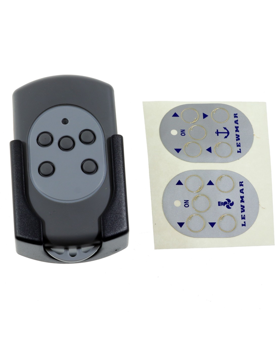 Zuverlässige Funkfernbedienung LEWMAR für Ankerwinde mit 5 Tasten. Vollständig wasserdicht, mit verschlüsseltem Funksignal, das unbeabsichtigte Auslösung durch andere Geräte verhindert. Ideal für sicheren und komfortablen Ankerbetrieb.
