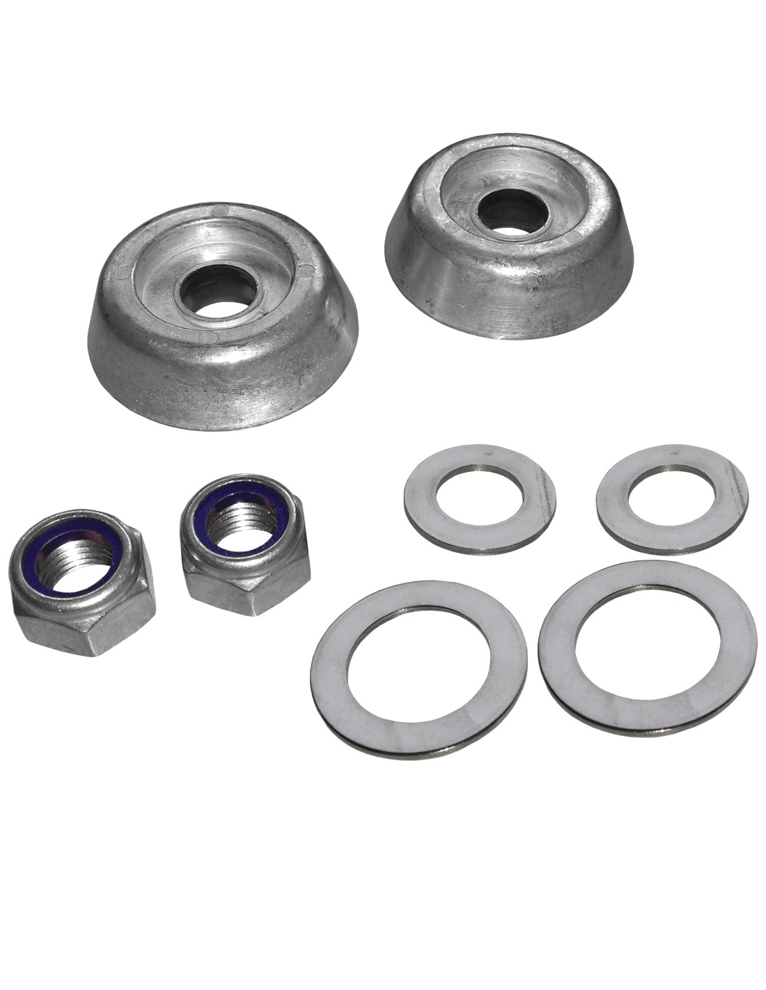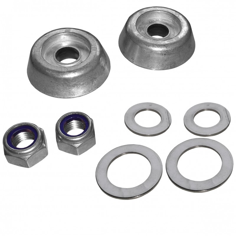 Die Anode ist auf einem Metallkern montiert, den wir auf die Welle stecken und mit Unterlegscheiben verpressen. Dies verhindert einen übermäßigen Anodenverschleiß.