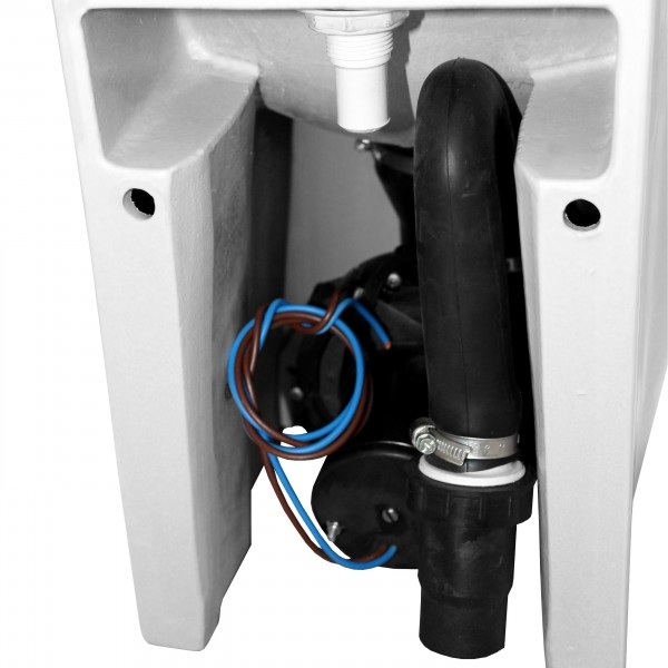 Die Basis der Toilette besteht aus bruchsicheren, maritimen Materialien. Die Installation ist über oder unter der Wasserlinie möglich, mit einer Abwasserförderung bis zu 1,2 m Höhe.