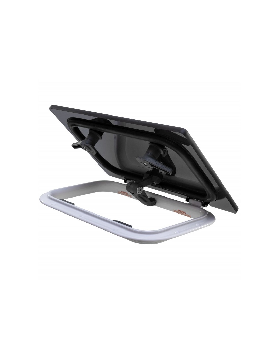 Der eloxierte Aluminiumrahmen schützt effektiv vor Korrosion, während das hochwertige Acrylglas eine hohe UV-Beständigkeit aufweist. Die Luke lässt sich dank robuster Scharniere komfortabel öffnen, mit stufenlos einstellbarer Position bis 95°.
