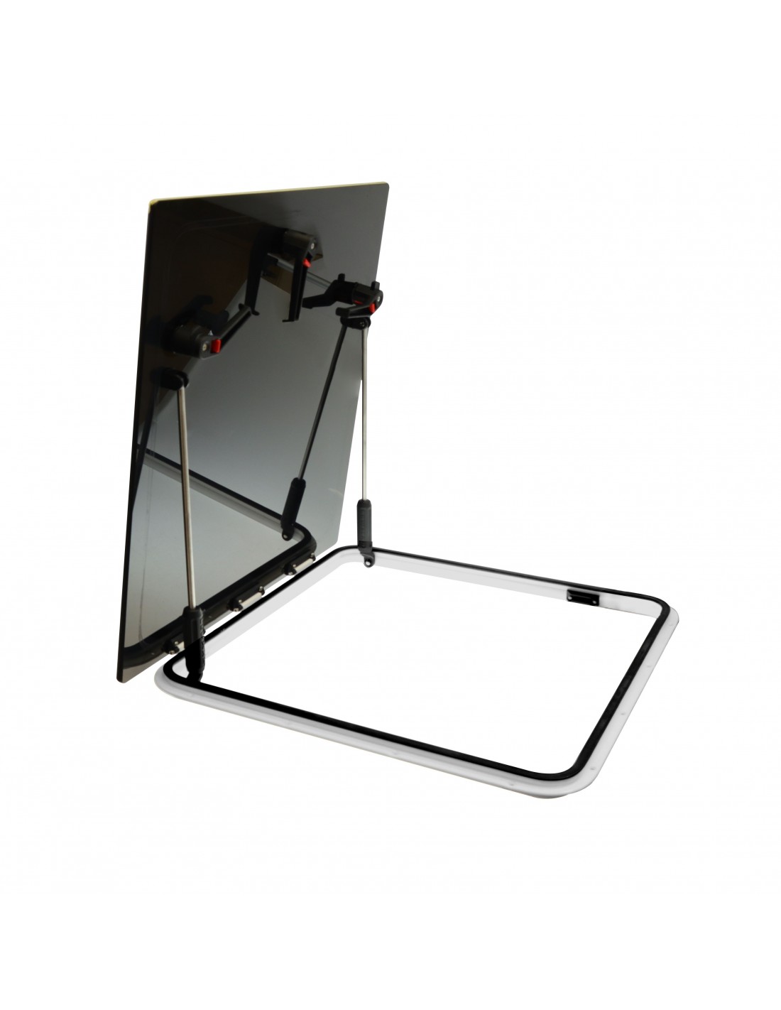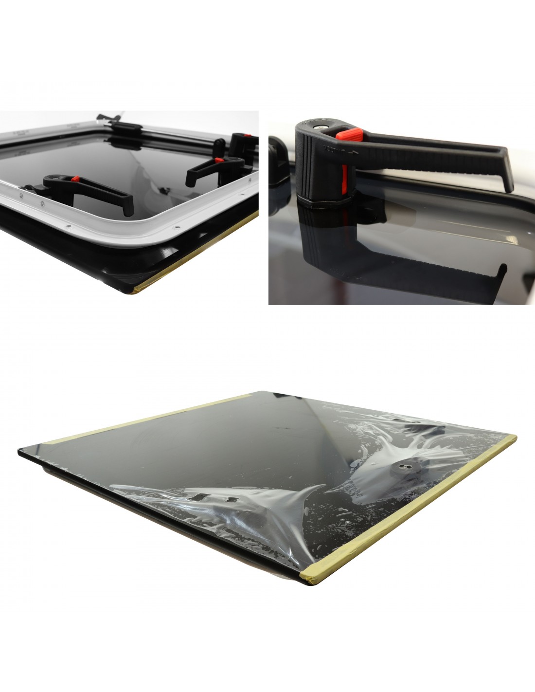 Die Luke ist mit dunkelgrauem EHD-Acrylglas (Extra High Durability) 10 mm ausgestattet.