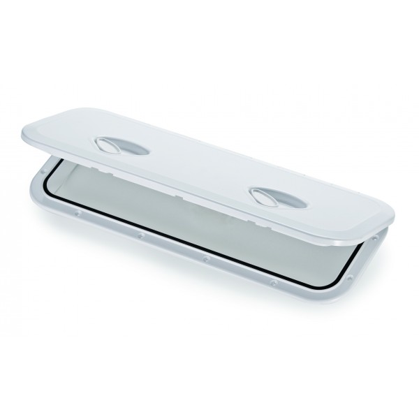 Kompakte, wasserdichte Abdeckung aus robustem Kunststoff in Cremeweiß (RAL 9010). Ideal für den Einsatz in Stauräumen, Inspektionsöffnungen und Technikfächern – besonders geeignet für den maritimen Bereich.