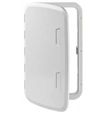 Große, robuste weiße Kunststoffabdeckung mit sicherem Schlüsselschloss. Ideal für Staufächer, Inspektionsklappen oder als Schrankabdeckung.