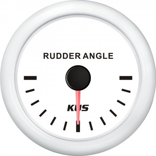 Präziser Ruderwinkelanzeiger für Widerstandssensoren 87–900 Ω. Weißes Zifferblatt, weißer Rahmen, Hintergrundbeleuchtung gelb oder rot.