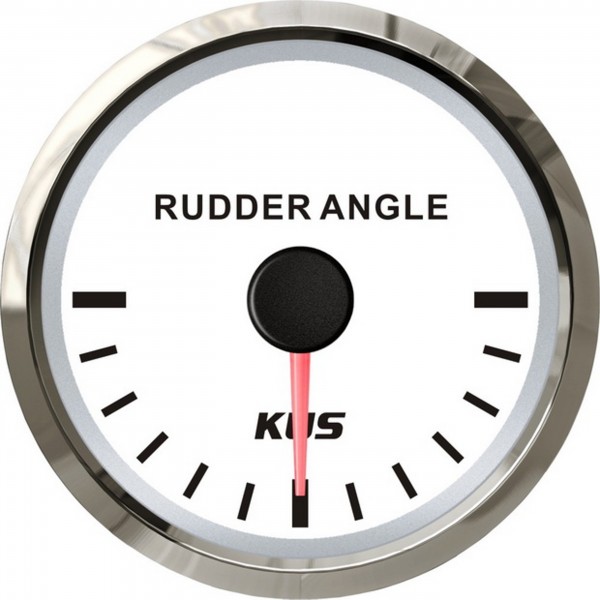 Präziser Ruderwinkelanzeiger für Widerstandssensoren 87–900 Ω. Weißes Zifferblatt, Edelstahlrahmen, Hintergrundbeleuchtung gelb oder rot.