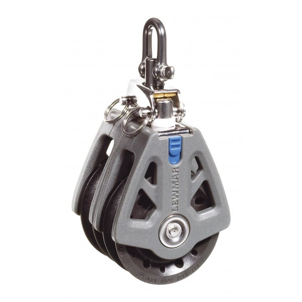 Robuster Doppelblock Synchro 60 von Lewmar, ausgestattet mit Schäkel – entwickelt für hohe Lasten und eine besonders reibungsarme Leinenführung.