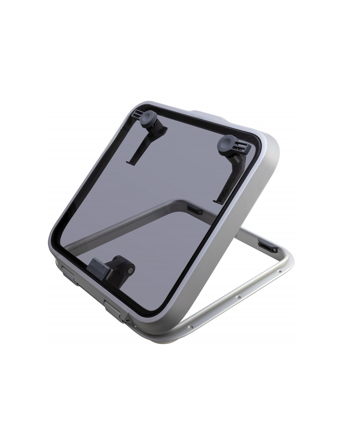 Die Luke ist für den Einbau auf Bootsdecks vorgesehen und zeichnet sich durch das FLANGE-Profil aus, das eine besonders sichere Montage ermöglicht. Dank der präzisen Verbindung von Acrylglas, Dichtungen und Rahmen wird eine hohe Wasserbeständigkeit erreicht. Die Schiebehebel erlauben das Fixieren der Luke in jedem Winkel bis maximal 95 Grad.
