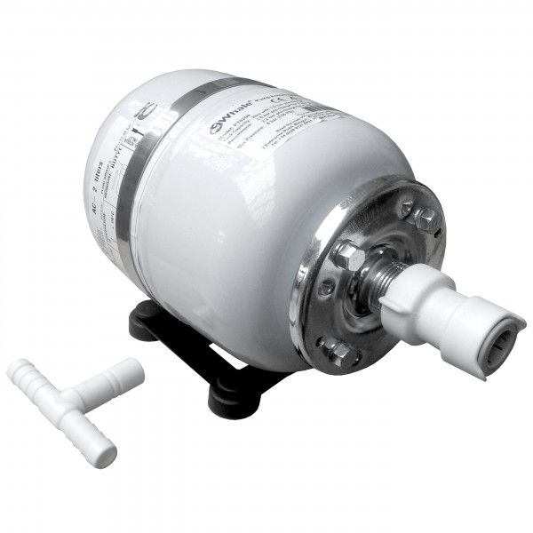 Der Whale Hydrofor 2 L ist ein kompakter Accumulatortank für die Wasserversorgung an Bord. Er sorgt für einen stetigen Wasserfluss bei konstantem Druck in der Bordinstallation.