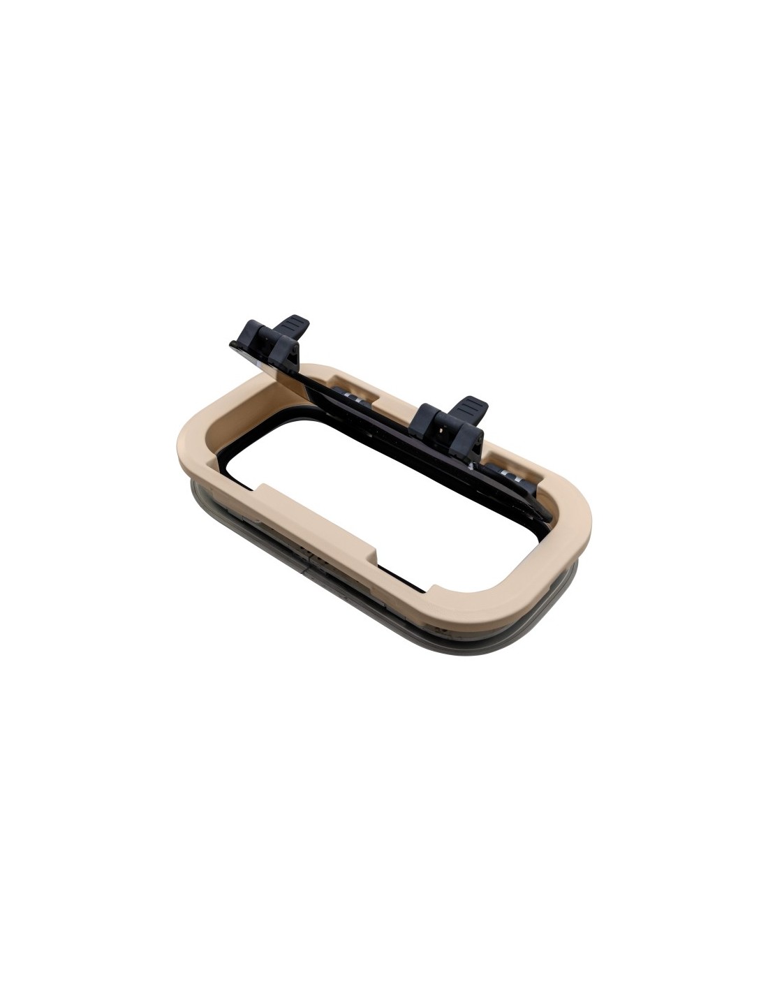 Öffnendes Lewmar Standard 1 Portlight mit silbernem Außenrahmen, cremefarbenem Innenrahmen aus ABS-Kunststoff und getöntem Acrylglas. Bewährte Lewmar-Qualität für Yachten und Boote.